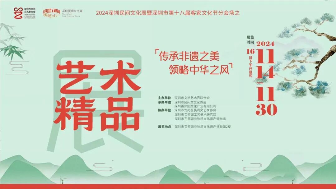 11月14日,2024深圳民间文化周暨深圳市第十八届客家文化节分会场活动之“传承非遗之美 领略中华之风”艺术精品展,在深圳市百师园非物质文化遗产博物馆开展。