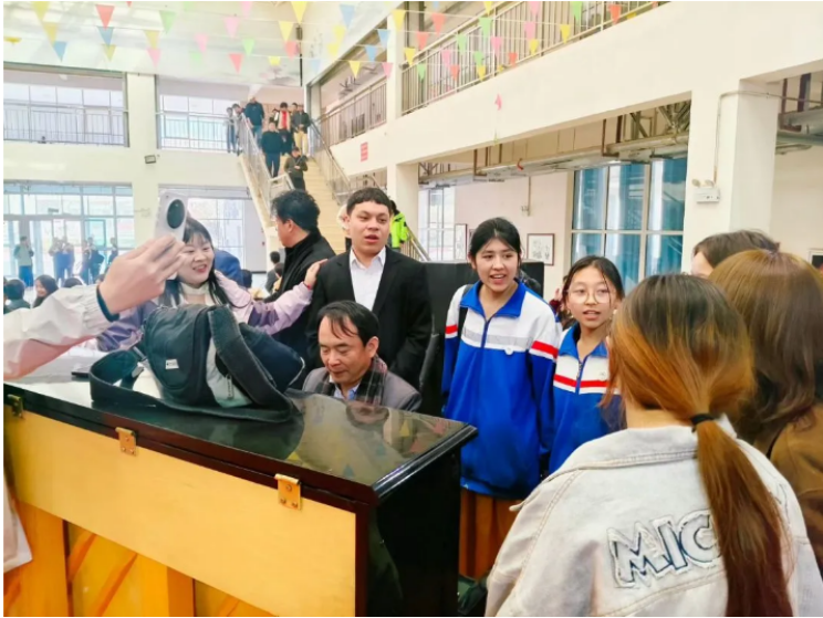 展演结束后,深圳艺术家与师生深入交流,围绕演唱技巧、乐器弹奏、舞台表现等畅所欲言,分享彼此的艺术感悟,现场气氛热烈,充满欢声笑语。在这样融洽的互动中,文化认同悄然种下心田,成为推动艺术共融与创新的内在动力。