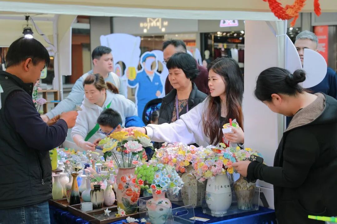 18个非遗与文创集市摊位人气爆棚,成为本次活动的“烟火气担当”。彩绘扇、手工中国结、苗银、苗族扎染、面塑等非遗手工艺品整齐陈列,琳琅满目。非遗传承人端坐摊位前,指尖翻飞间便将寻常材料打造成精美的艺术品,市民围在摊位前近距离观赏,主动与传承人交流技艺细节。