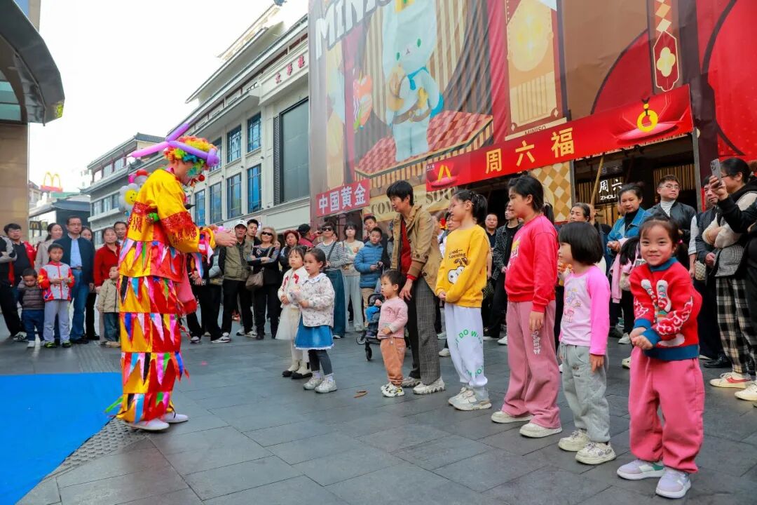 东门步行街街头,23场喜剧艺术快闪秀随机空降,川剧变脸演员一个转身、一个甩袖便变幻出不同脸谱,引得围观市民连连叫好;滑稽小丑用夸张的动作和幽默的互动,将快乐传递给每一个路人;二人转演员的精彩演绎则让现场充满热闹气息,打造出名副其实的“流动的喜剧舞台”。