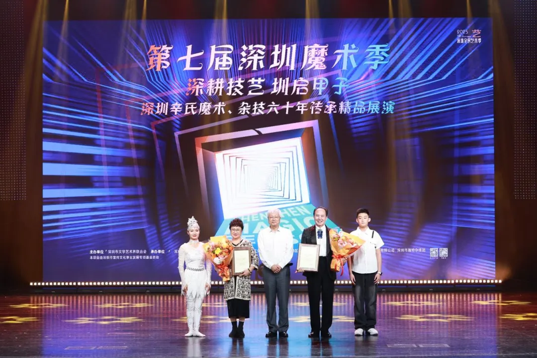 致敬深圳魔术杂技人的一甲子。11月9日在龙岗文化中心大剧院上演的“深耕技艺、圳启甲子——深圳辛氏魔术、杂技六十年传承精品展演”汇聚杂技辛玉兰、魔术辛之宽等三代深圳实力杂技魔术人,另特邀林尤恩、郑嘉宝、万文上、莎莎、孙晓楠、张帅等联袂献演近年斩获国内外魔术大奖的精品力作。活动现场的“辛氏杂技、辛氏魔术六十年艺术长廊”展览区图文并茂呈现两个家族的艺术传奇、一座城市的魔幻记忆;辛氏杂技、辛氏魔术艺术家精选的节目展现深圳杂技魔术人六十载的守正创新,以及在百年传承的过程中如何将传统艺术精髓与现代创新理念交融碰撞,淬炼出独树一帜的“深派审美”;在展演中的“甲子传承・艺脉永续”致敬环节,播放杂技传人辛玉兰采访视频、魔术传人辛之宽艺术生涯回顾视频等,深圳市文联向辛玉兰、辛之宽颁发“六十载卓越艺术荣誉”证书,以表彰两位艺术家对深圳杂技、魔术做出的卓越贡献与深远影响。国内魔术精英的加持让展演更为层次丰富,兼具历史厚度与视觉张力的艺术盛宴让观众直呼太过瘾了。