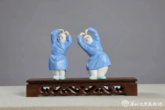 该套泥彩塑作品造型简洁、色彩明快,体现了抗击疫情一线医护人员在疫情面前不畏艰险、相互鼓励、团结一心、积极迎战的精神面貌。