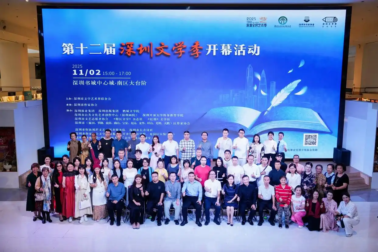 2025-11文光射斗,笔聚山海才情壮。芳华满座,鹏城四季沐文风。11月2日,在氤氲着文学气息的深圳书城中心城南区大台阶上,第十二届深圳文学季正式开幕。这是深圳一年一度备受期待的文学盛会。它为广大读者与新大众文艺创作者铺就了一片广阔的舞台,让阅读与创作、文学与梦想在此交织,生动演绎了一场活力四射的文学嘉年华。