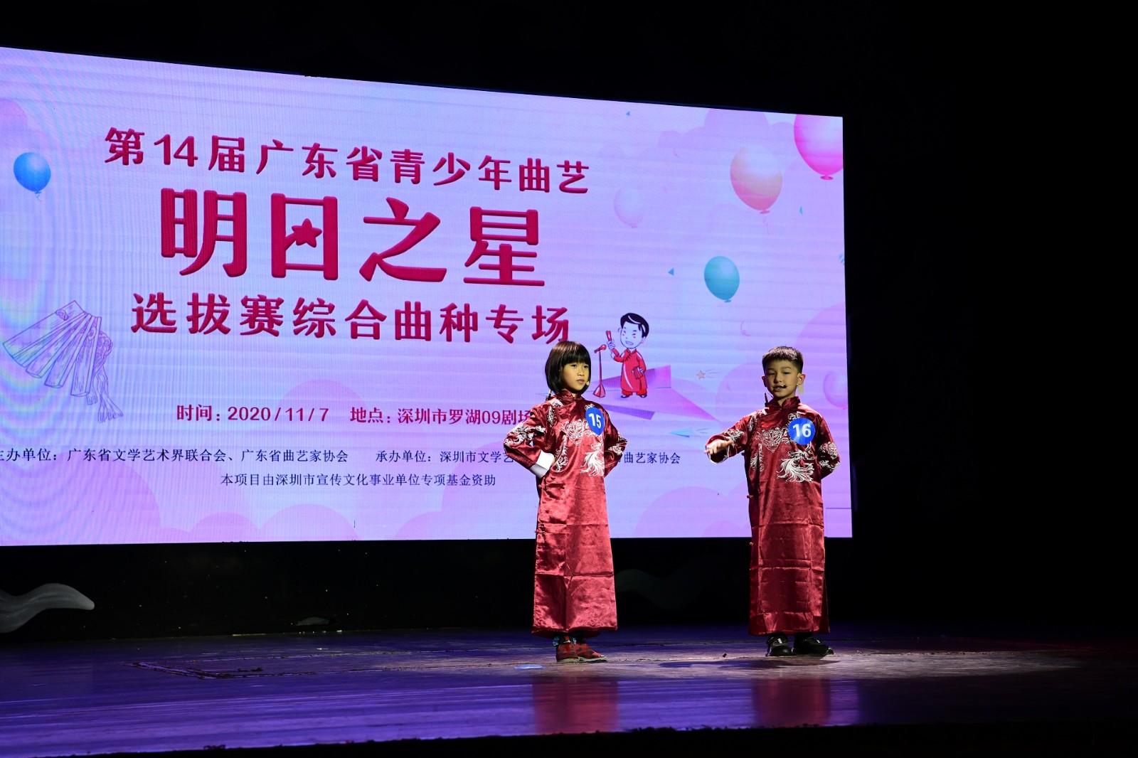 11月7日下午,由广东省文学艺术界联合会、广东省曲艺家协会主办,深圳市文学艺术界联合会、深圳市曲艺家协会承办的第十四届广东省青少年曲艺“明日之星”选拔赛综合曲种专场决赛暨颁奖仪式在深圳罗湖09剧场举行。