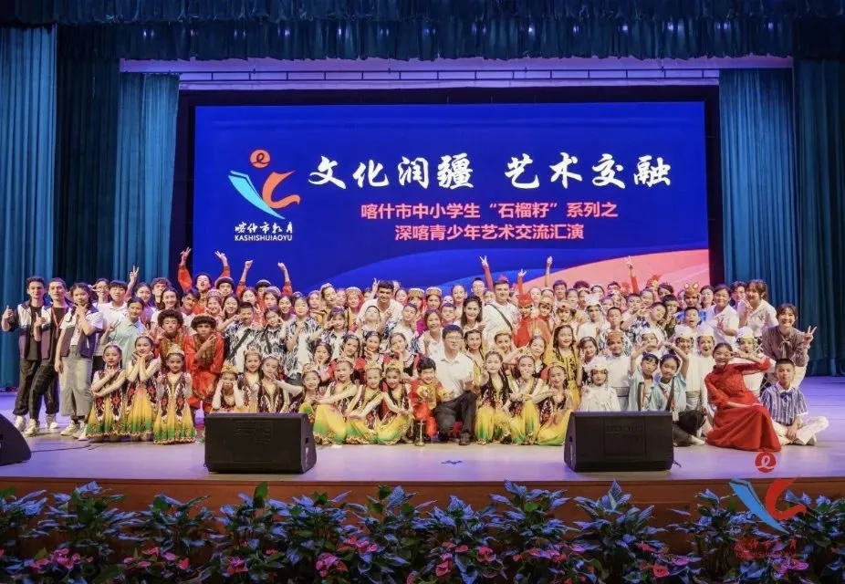 深圳市对口支援新疆工作前方指挥部、深圳市委教育工委、深圳市教育局、喀什市委教育工委、喀什市教育局、深圳市民族宗教事务局、共青团深圳市委员会、深圳市乡村振兴和协作交流局等支持创作的原创舞台音乐剧《石榴殷红·不负韶华》首次在深上演,受到了观众的热烈欢迎。这部根据真人真事创编的音乐剧,带着万千喀什师生对深圳长久以来跨越山海教育帮扶的感恩之情登台“告白”,同时也为2024年援疆项目“石榴籽”青少年交流活动画上圆满句号。