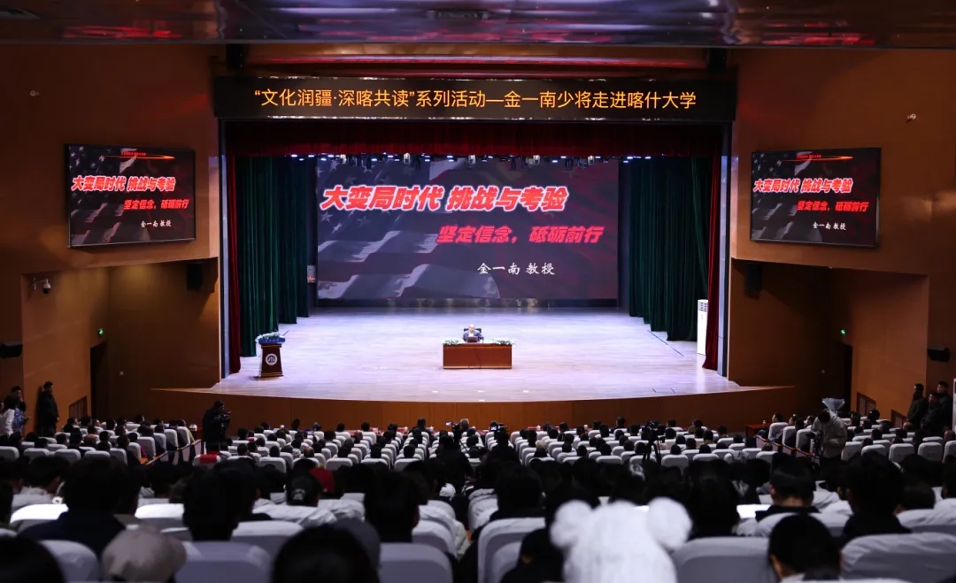 深圳市对口支援新疆工作前方指挥部、深圳市委宣传部、喀什地委宣传部指导,深圳读书月组委会办公室、深圳出版集团有限公司主办,深圳市深版文化商业管理集团有限公司承办,喀什大学、喀什市委支持的“文化润疆·深喀共读”系列活动邀请少将金一南走进喀什大学带来主题讲座《大变局时代挑战与考验,坚持信念,砥砺前行》,现场1300多名干部、市民、师生、官兵等共同聆听了这场精彩的讲演。