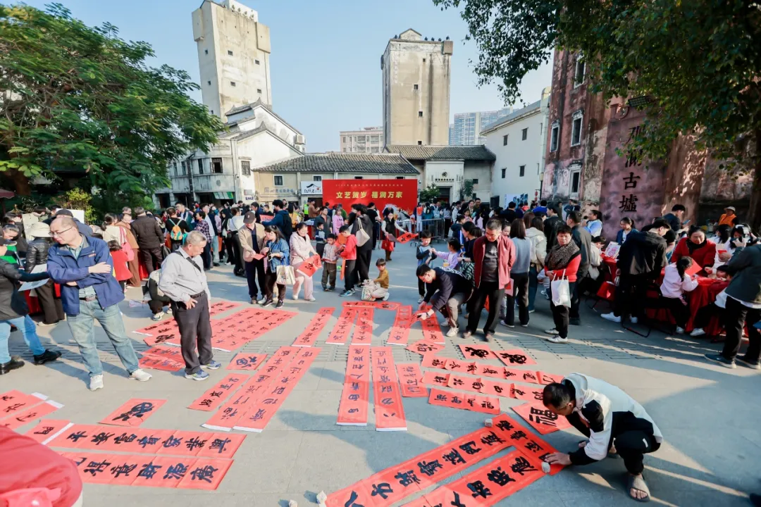 1月24日下午,由龙华区文联主办的“文艺贺岁 福润万家”2026文艺志愿进基层系列活动在观澜古墟举行。来自区书法家协会、美术家协会、版画家协会、民间文艺家协会、文艺志愿者协会、龙华印社等6个文艺家协会的15位艺术工作者,以及特邀嘉宾以艺术传递温暖,将浓浓年味送到市民身边。