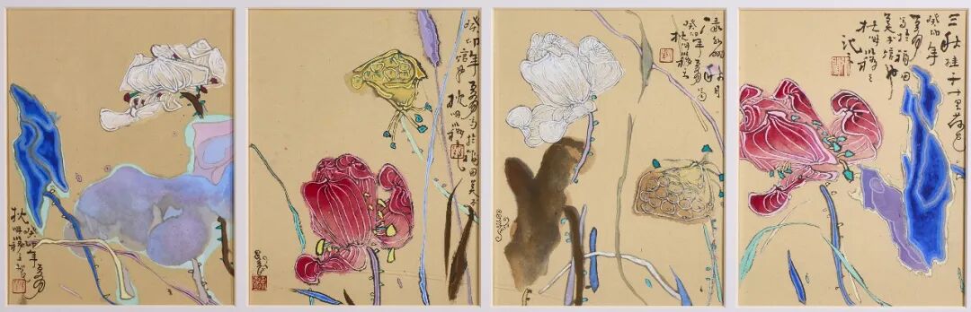 张闯《三秋桂子十裹荷色》30cm×23cm×4 纸本设色 2024年