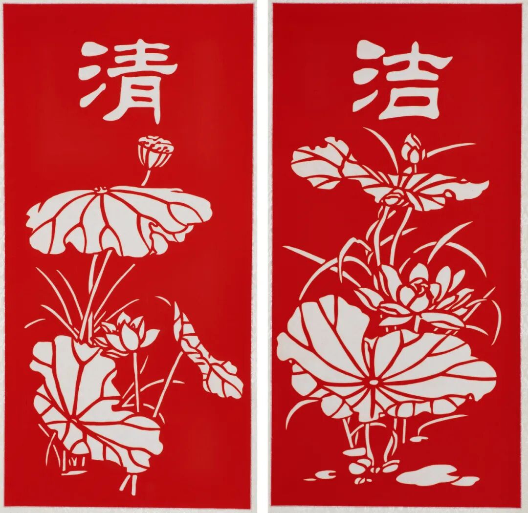 刘丽春《清正廉洁(荷花系列)之清、洁》159cm×56cm×2 2024年
