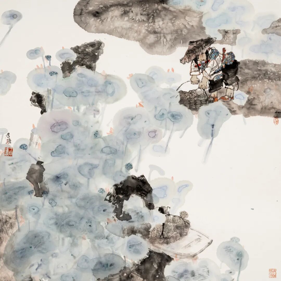 王君强《采莲歌》69cm×69cm 纸本设色 2024年