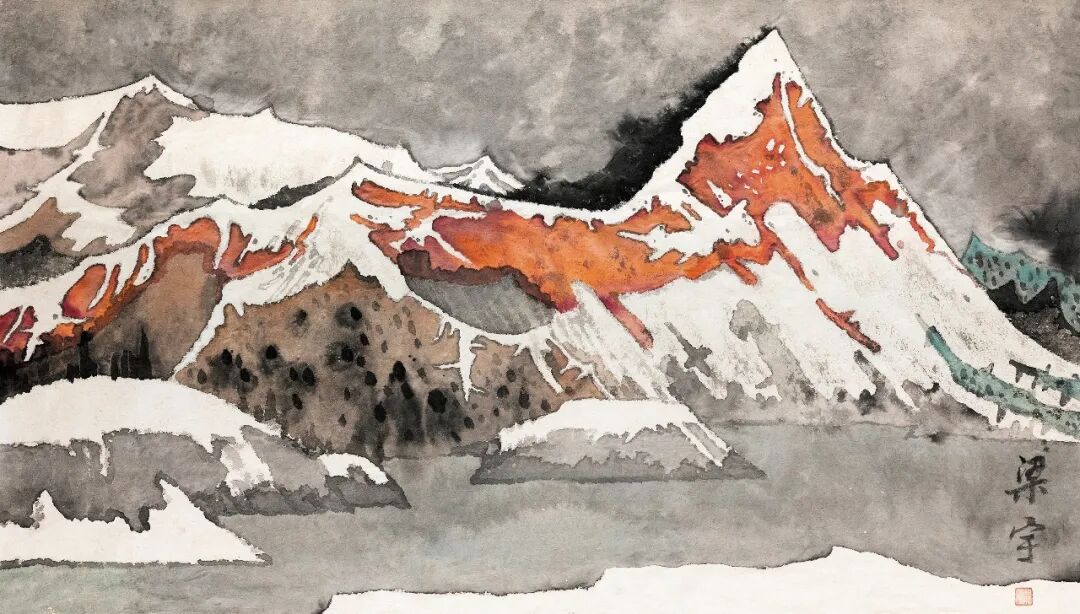 梁宇《雪域喀什》90cm×158 纸本设色 2024年